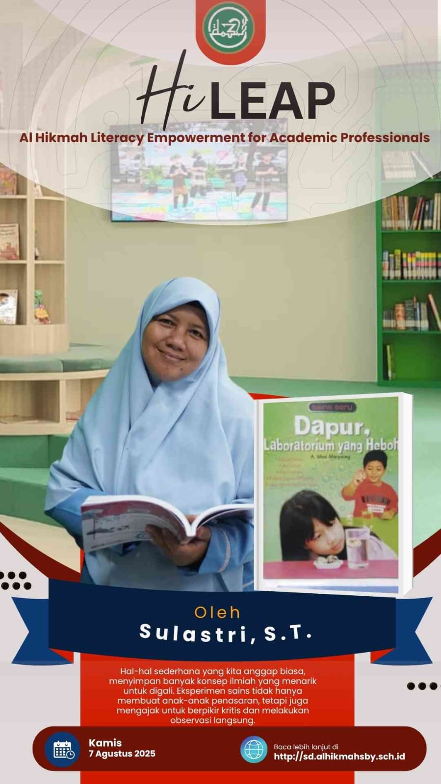 Buku ini membuka sudut pandang baru bahwa pembelajaran sains justru bisa dimulai dari lingkungan terdekat. Hal-hal sederhana yang selama ini kita anggap biasa, ternyata menyimpan banyak konsep ilmiah yang menarik untuk digali. Eksperimen-eksperimen yang dijelaskan tidak hanya membuat anak-anak penasaran, tetapi juga mengajak mereka untuk berpikir kritis dan melakukan observasi langsung. Saya belajar bahwa rasa ingin tahu adalah kunci awal dari proses ilmiah. Buku ini juga mengingatkan kembali pentingnya peran orang tua dan guru dalam menciptakan suasana belajar yang kreatif, dalam membangun ikatan sekaligus menumbuhkan kecintaan mereka terhadap ilmu pengetahuan.