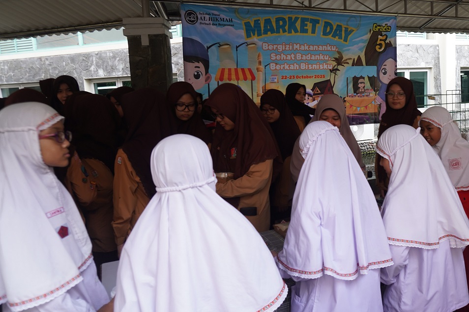 Market day dilaksanakan di koridor SMP AL Hikmah. Suasana di area SMP Al Hikmah berubah layaknya pasar malam mini. Anak-anak kelas 5 tampak aktif menawarkan produk mereka dengan berbagai cara yang kreatif. Ada yang menggunakan poster promosi, ada yang memanggil pembeli dengan suara riang, bahkan ada yang memberikan bonus menarik untuk setiap pembelian.