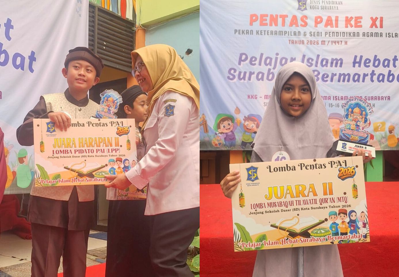 Surabaya, 05 Maret 2026 - Dua murid SD Al Hikmah kembali mengharumkan nama sekolah dengan meraih prestasi dalam ajang Pentas Pendidikan Agama Islam (PAI) tahun 2026 yang diselenggarakan oleh Dinas Pendidikan Kota Surabaya. Kegiatan ini menjadi wadah bagi para siswa untuk menunjukkan kemampuan dan bakat mereka dalam bidang keagamaan.